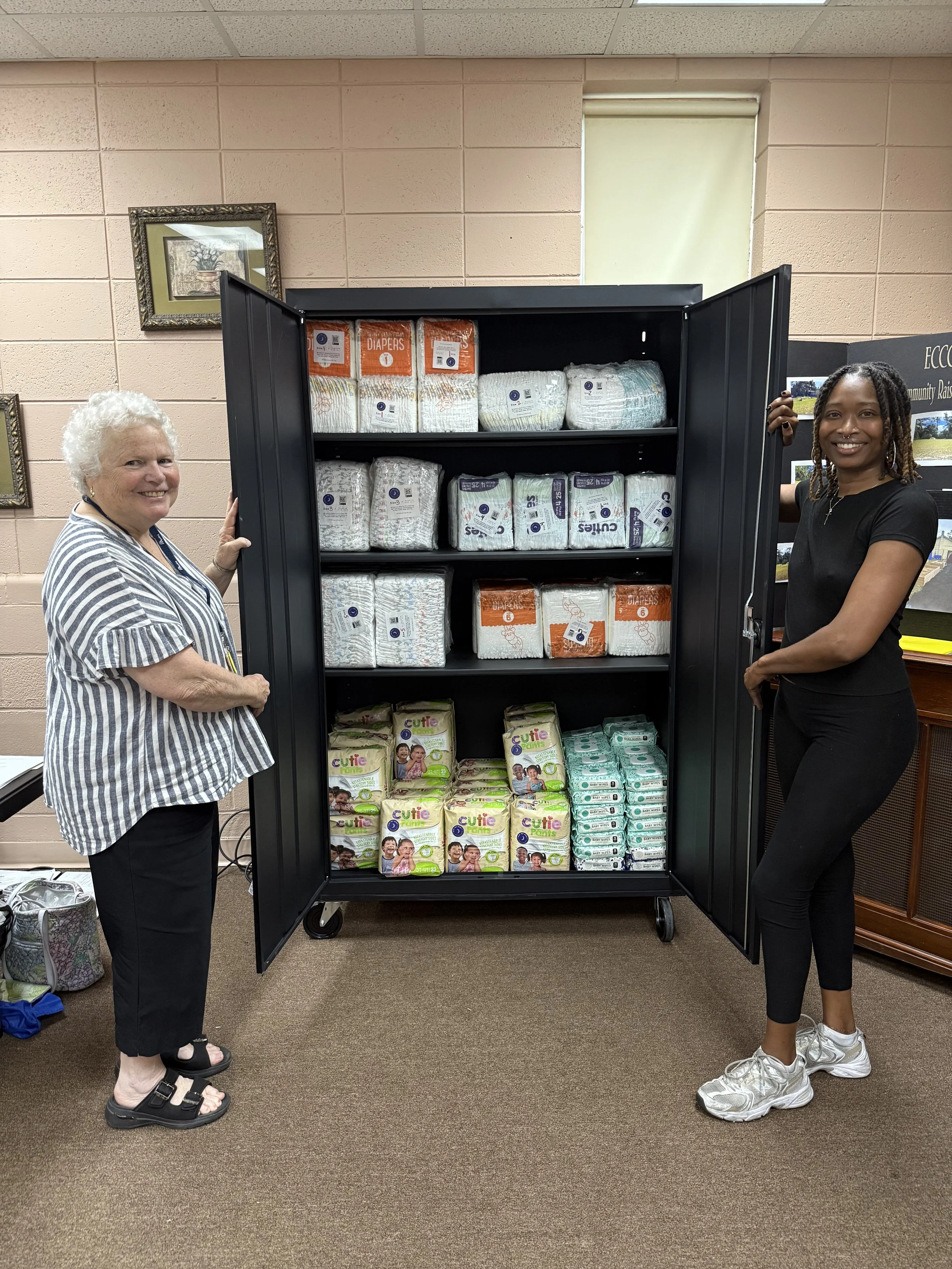We stock “Moon Lockers” with diaper supplies at Chatham and Evans County Inspiritus locations through Congressional Directed Spending funds championed by Senators Jon Ossoff and Rev. Raphael Warnock.